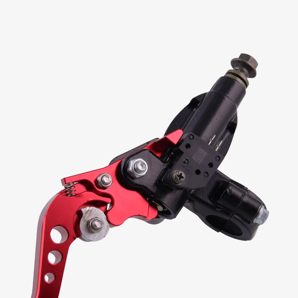 Мотоцикл CNC Гидравлический тормозной главный цилиндр и рычаг сцепления Высокое качество, простота установки, долговечность Регулируемая система reach обеспечивает идеальное положение рычага для всех гонщиков. Алюминиевый корпус, поршень изготовлен из специальной нержавеющей стали. Размещение на транспортном средстве: слева, справа Цвет: красный/черный Материал: Алюминий Размер: как показано на рисунке