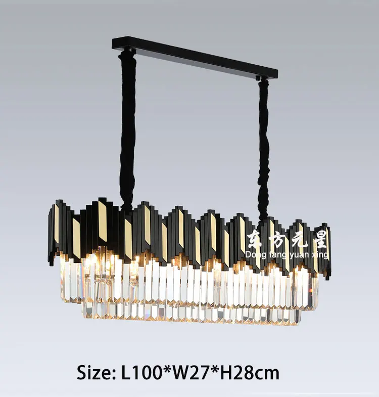 Светодиодный хрустальный подвесной светильник, светильник, черная роскошная люстра для ресторана, прямоугольный подвесной светильник, украшение для дома
