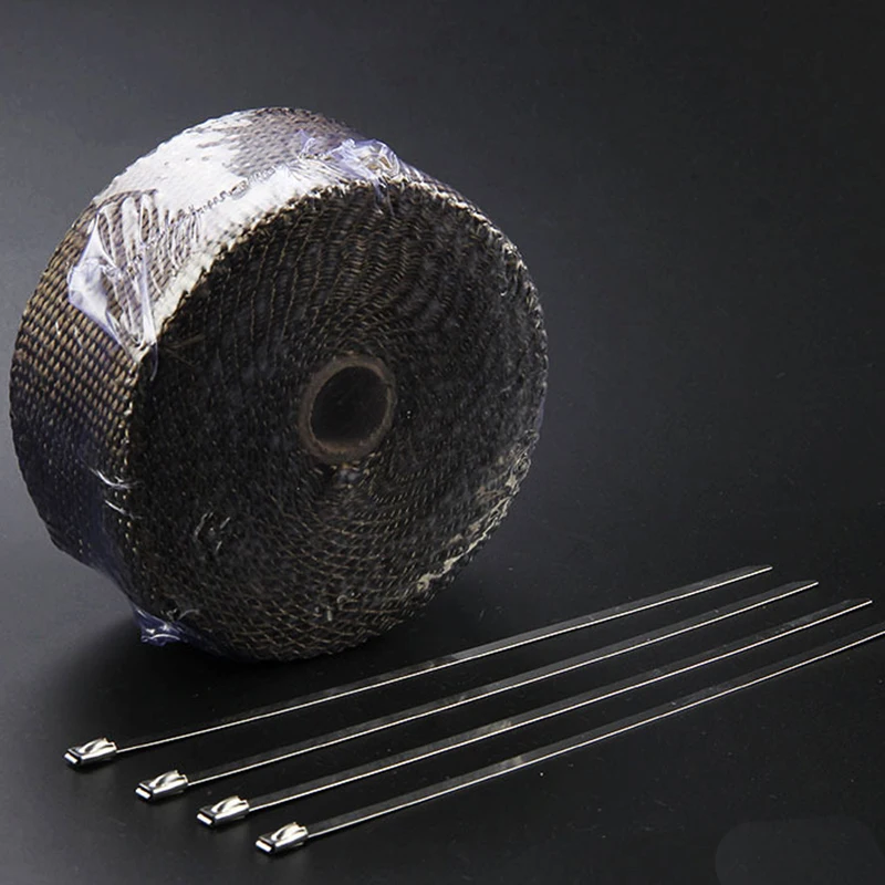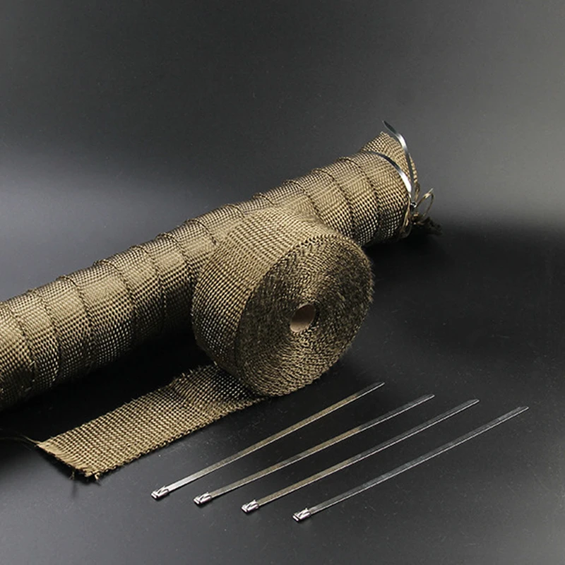 Технические характеристики: Цвет: Титан Материал: Стекло волокна Температура изоляции: до 900-1200 градусов Размер: 5 см x 5 м/10 м/15 м Использование: хлопковая изоляция, обернутая вокруг выхлопной трубы, может быть зафиксирована.