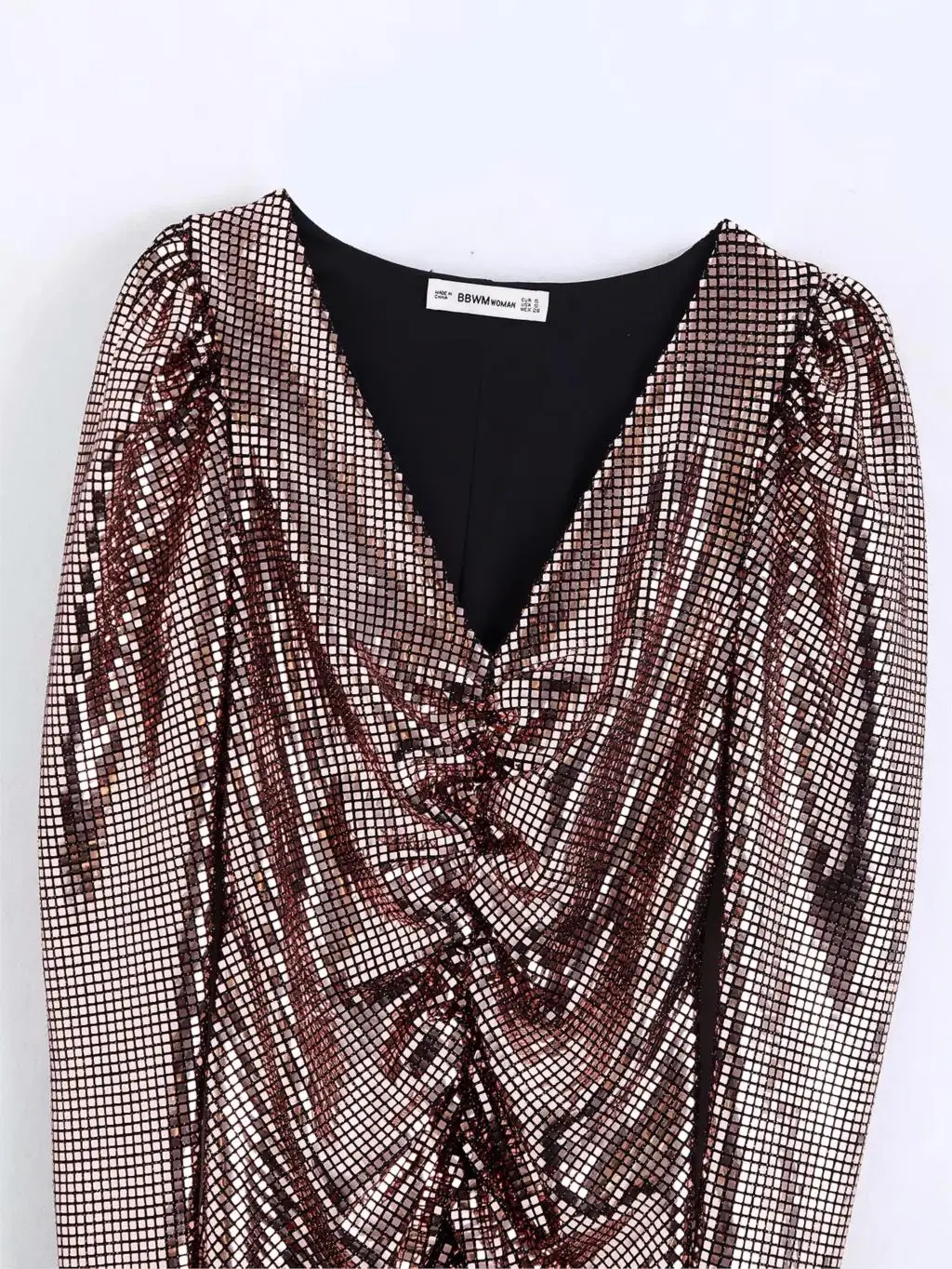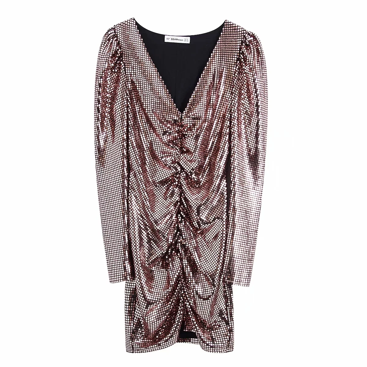 Персиковое квадратное женское платье с блестками, с длинным рукавом, blingbling, женские сексуальные вечерние платья zora, Vestidos, Женское зимнее мини платье с запахом
