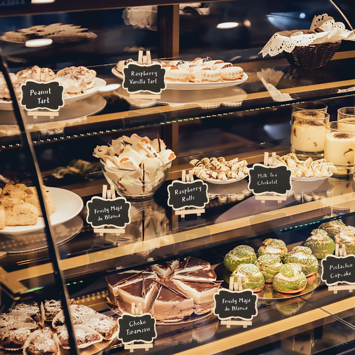 whown. - Material: Wood. /White - Size: 6.5 x 9 x 1.2cm/7.9 x 12 x 1.2cm - Great gift for your kids to bring them more fun. - Made of premium wood, the mini blackboard is durable and long lasting use. - With mini and cute design, it can also be great table ornament for wedding party, home or office. - Safe and convenient. With a removable cute round base, it can stand upright stable on any horizontal surface. 10pcs Mini Decorative Boarder Chalkboard Signs Black Board Message Board with Stand for Wedding Party Decoration Primary Color Small Size 170101