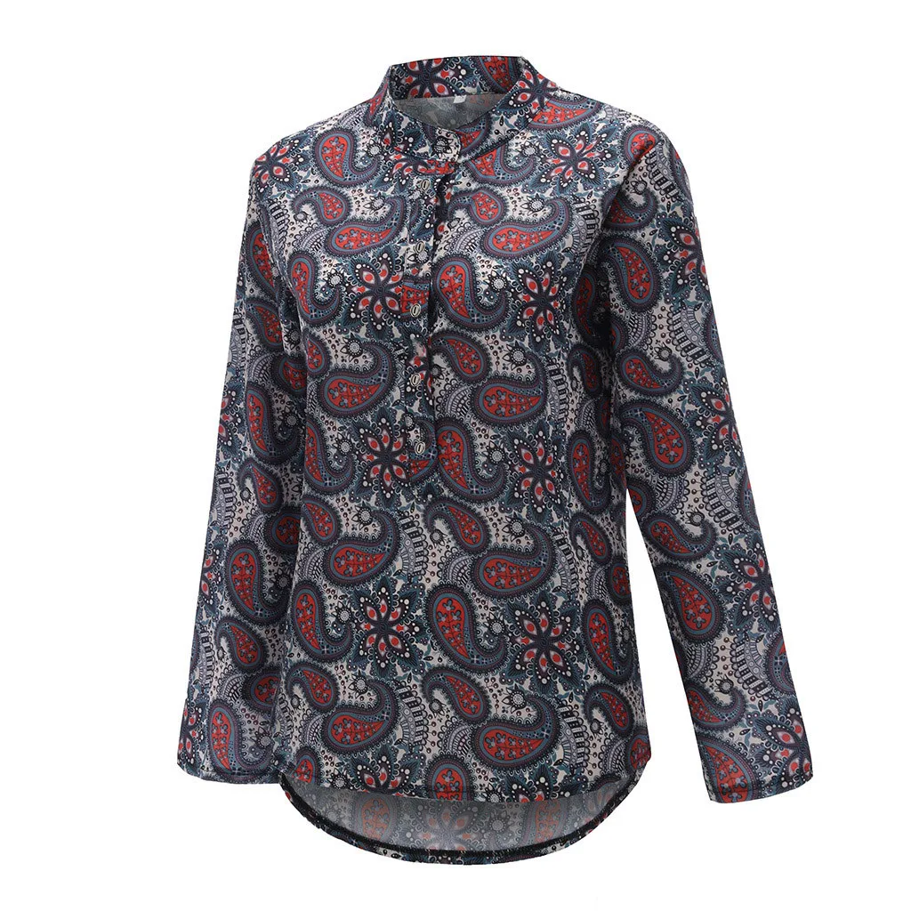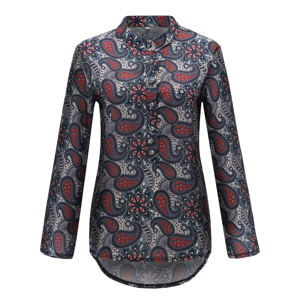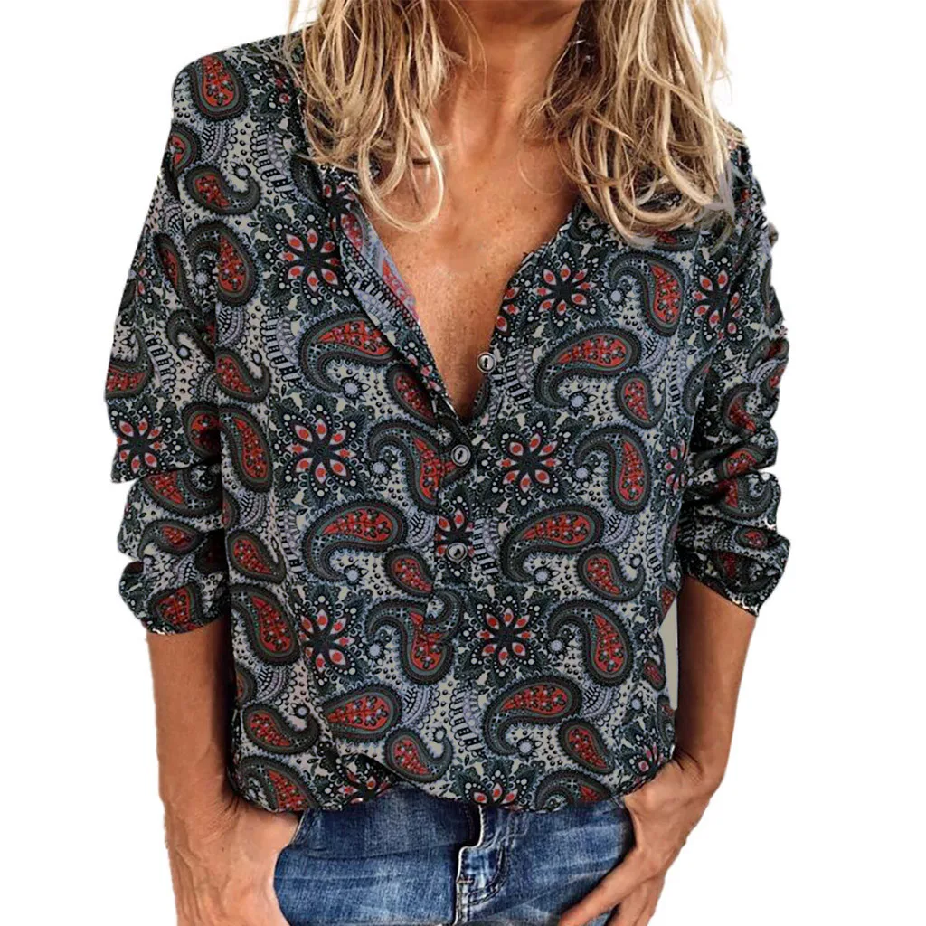 Женский свободный пуловер на пуговицах, с длинным рукавом, v-образным вырезом и принтом