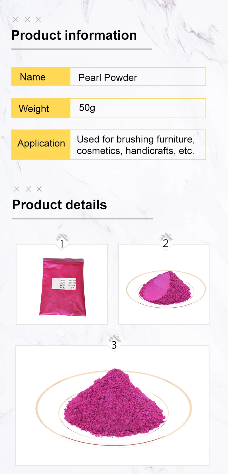 Жемчужный порошок в нашем магазине может быть использован в нашей коже и поверхности объекта, чтобы они выглядели очень сияющими и разными.