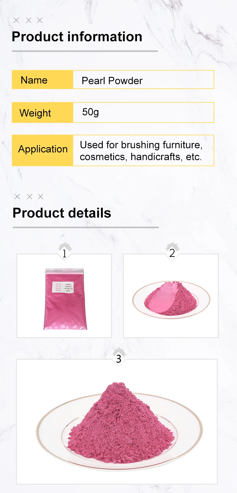 Жемчужный порошок в нашем магазине может быть использован в нашей коже и поверхности объекта, чтобы они выглядели очень сияющими и разными.