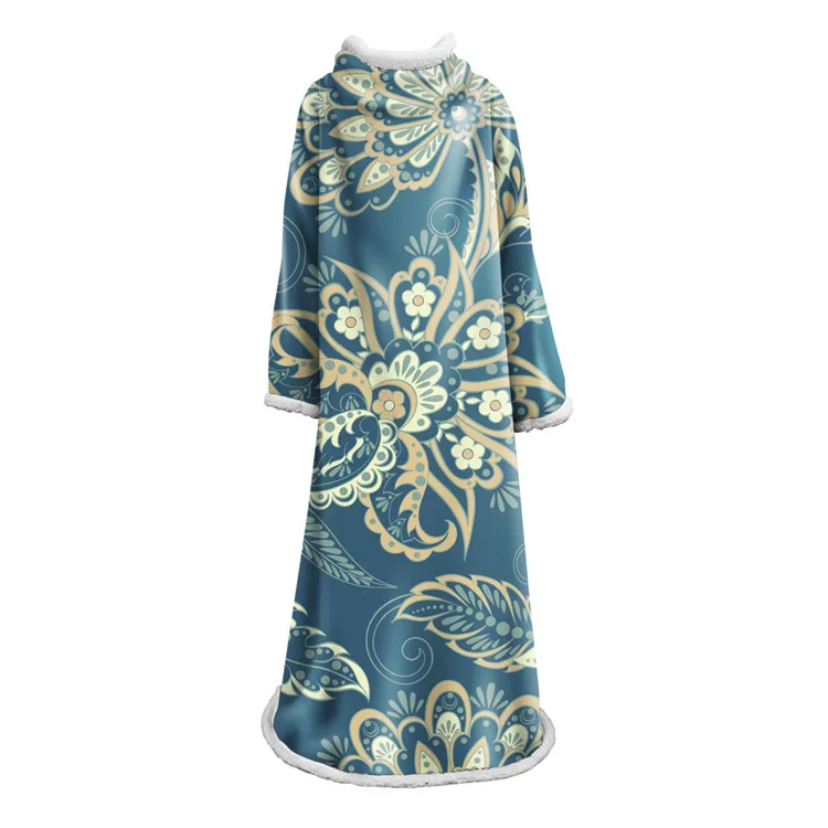 Зимнее теплое шерстяное Флисовое одеяло с рукавами, богемное носимое одеяло для кровати, диван Материалы: 100% полиэстер Размер: 127*178 см/50*70 дюймов (длина рукава 65 см) Цвет: как на фото Тип: одеяло с рукавами Упаковка: 1 одеяло Полезные советы: из-за разницы в освещении и экране светильник может значительно отличаться от изображения. Замеры сделаны вручную, поэтому возможны отклонения на 1-5 см.