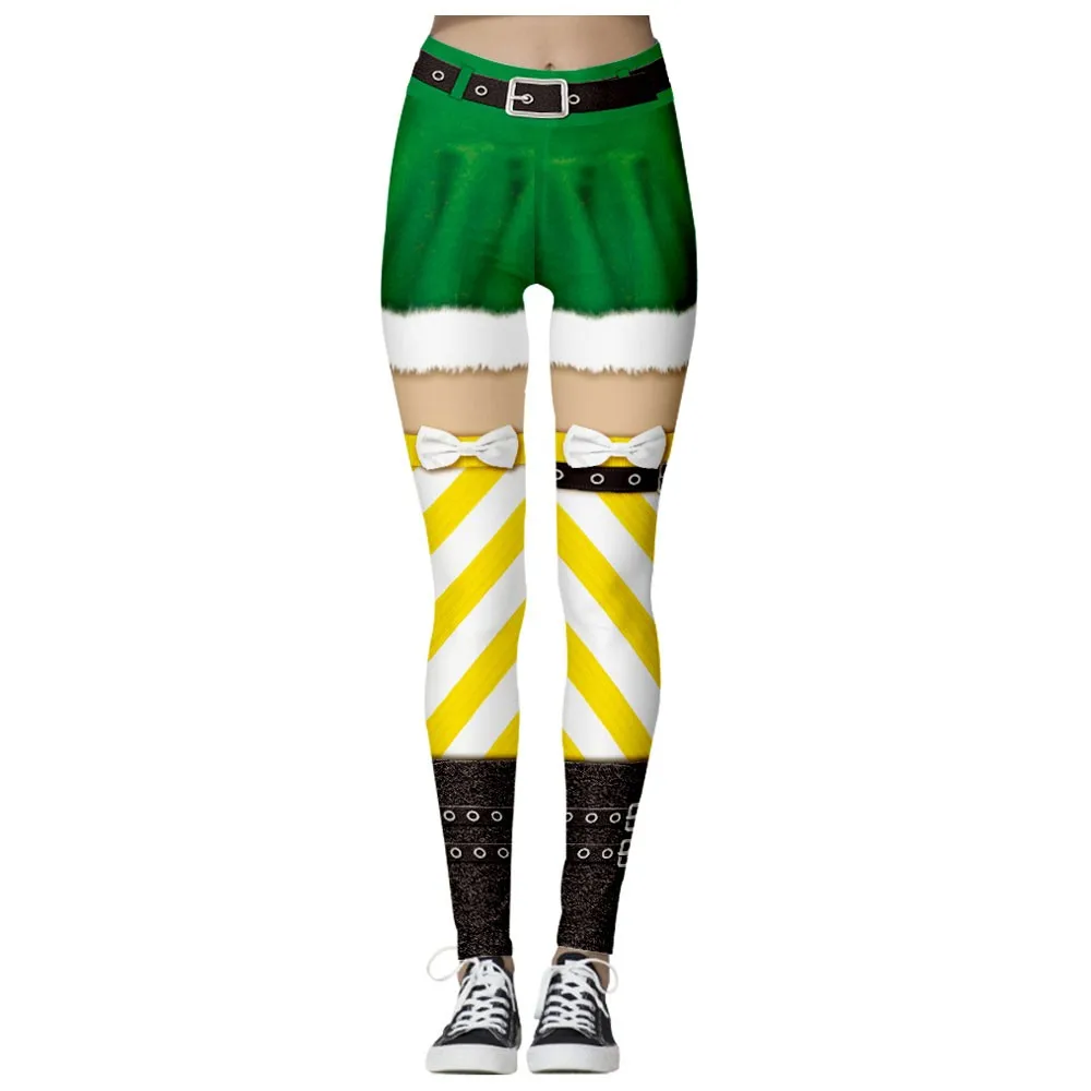 Women Fashion High Waist Yoga Christmas Print Running Sports Pants Trouser