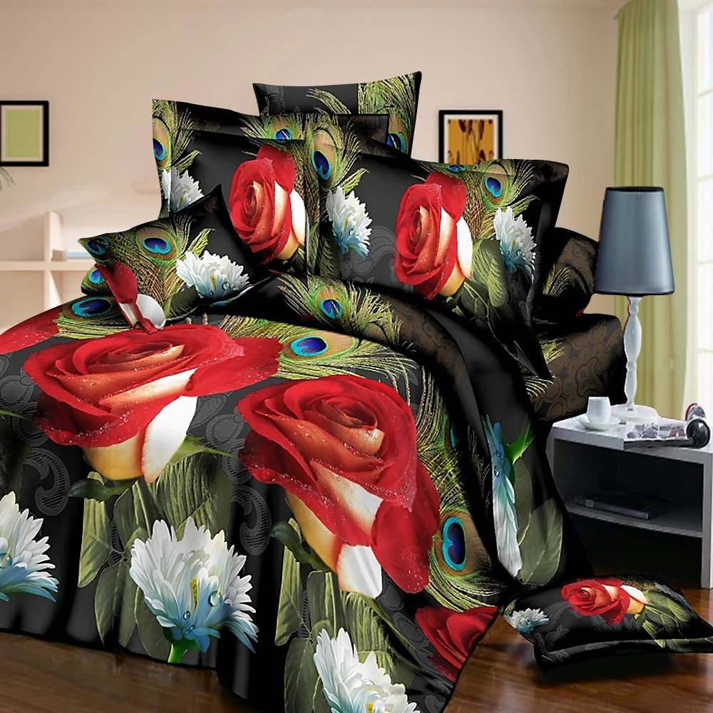 Название: классический Комплект постельного белья с принтом красный цветок комплект постельного белья 4 шт./компл. постельное белье пастырской простыня сторона пододеяльник 2019 кровать с мультфильмами Горячая