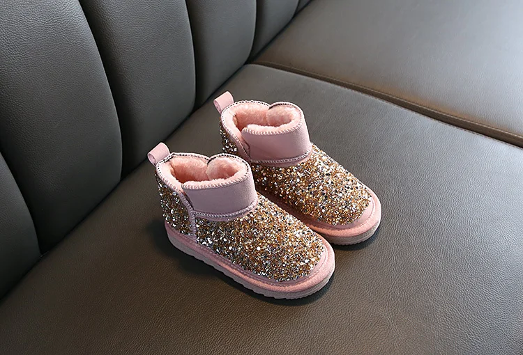 Детские ботинки; Коллекция 2020 года; Корейские зимние теплые сапоги из искусственной кожи для девочек; Водонепроницаемые зимние сапоги из блестящего плюша; Детские ботинки; Обувь для девочек; Детская обувь