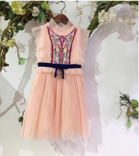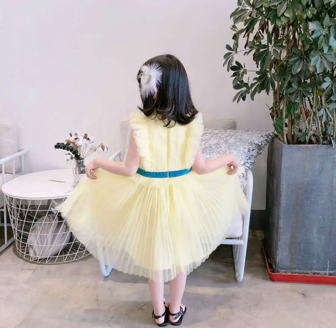 Платье для маленьких девочек с вышивкой феи, вечернее желтое платье принцессы из тюля с розовым бантом, одежда для малышей, 2019