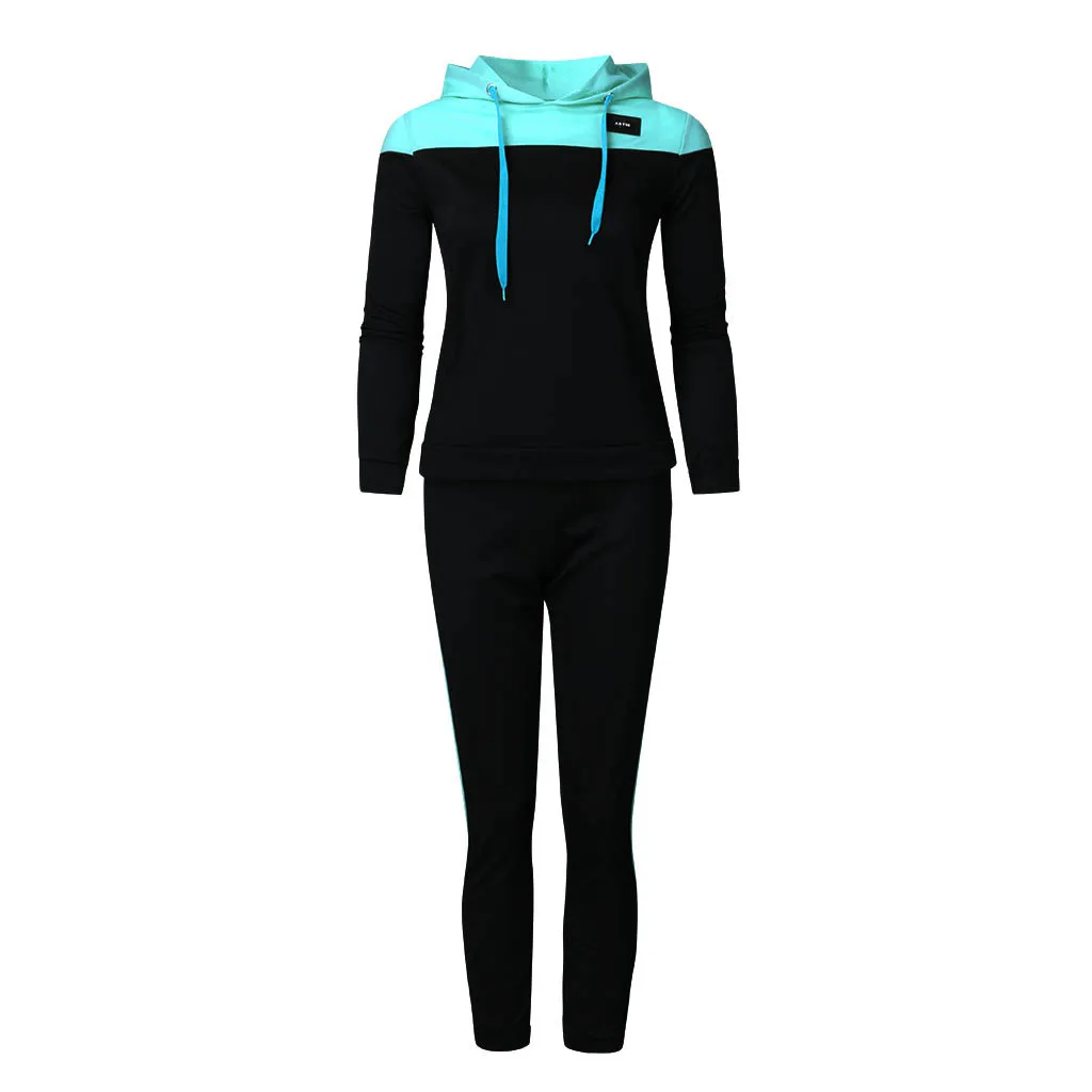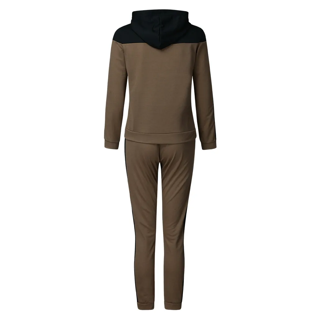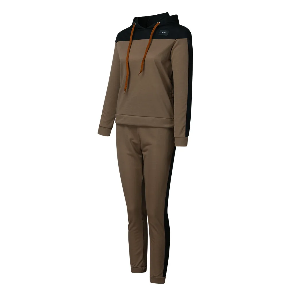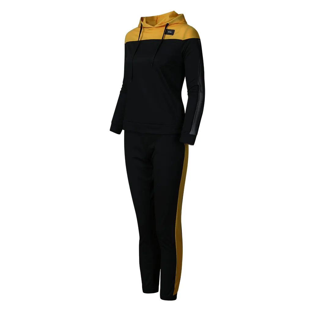 Женский Однотонный свитер с капюшоном и штаны, спортивный костюм Костюм