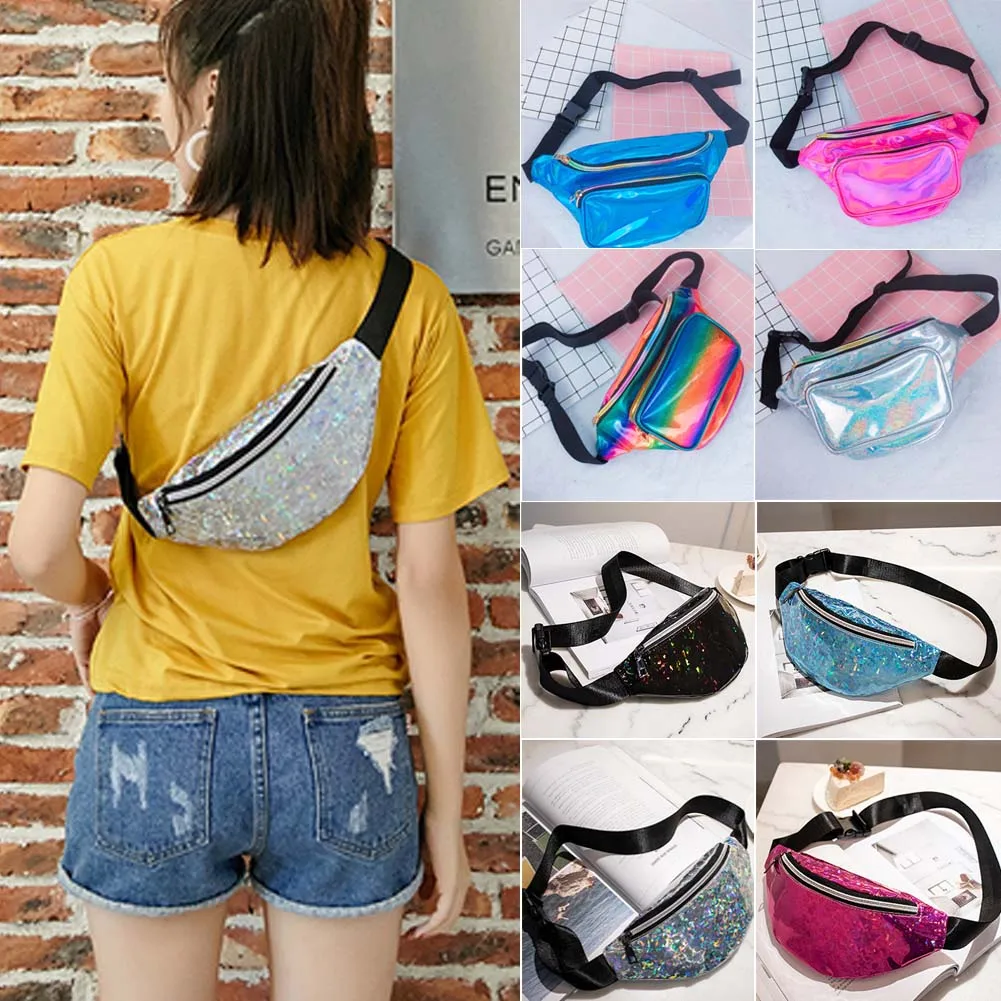 Женская и Мужская поясная сумка, Прозрачный блестящий пояс, поясная сумка, сумка на бедрах, сумка для путешествий