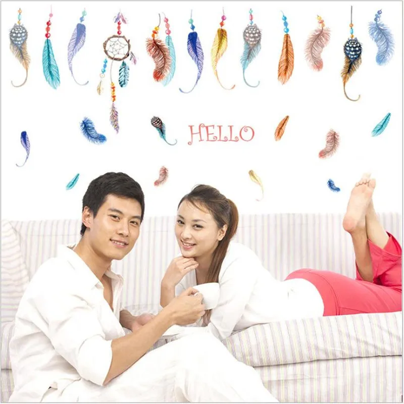 Название продукта: цветная Наклейка на стену с перьями Материал изделия: ПВХ Размер продукта: 50*70 см Вес изделия: около 100 г Применимая поверхность стен: гладкая и не пылевая стена Советы: Протрите пыль и жир на стене тряпкой перед нанесением.