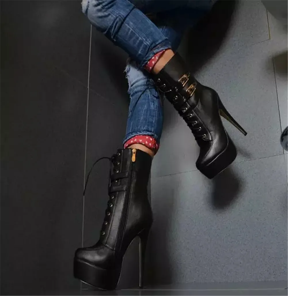 Оригинальные Соблазнительные Черные ботильоны на очень высокой платформе; Женская пикантная обувь на очень высоком каблуке со шнуровкой; Женские вечерние туфли высокого качества Пожалуйста, используйте нашу таблицу размеров при выборе размера.