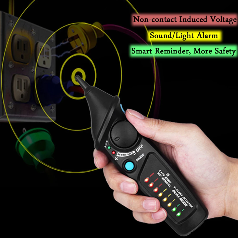 Имеет индукционную опасную сигнализацию напряжения, прямое/нейтральное различие провода, местоположение точки останова провода, фонарик, функции проверки непрерывности и т. д.