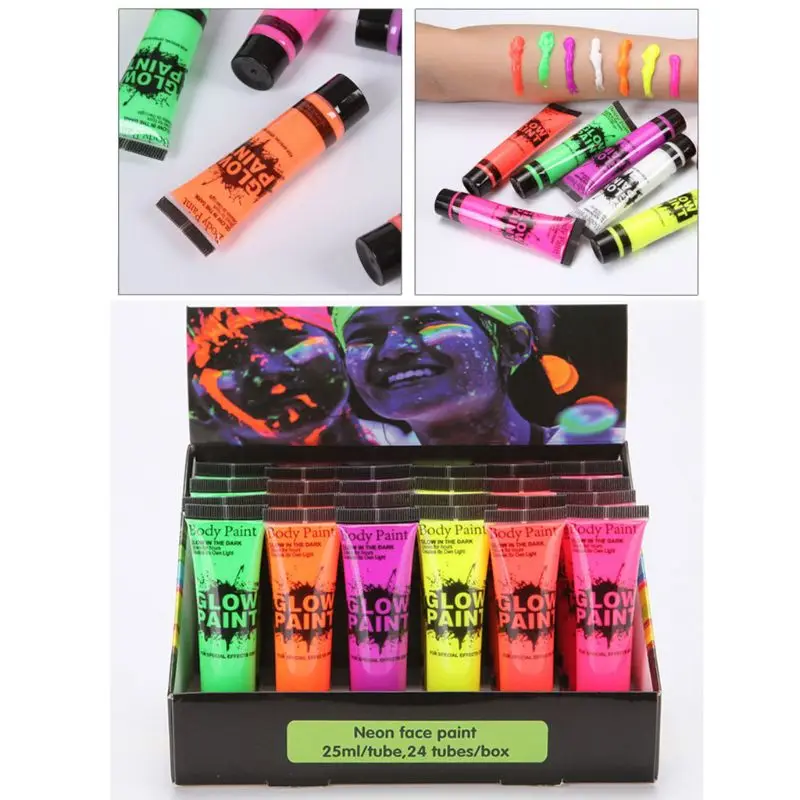 Особенности: 7 ярких оттенков лица и тела светятся ярко, пусть вы будете самой яркой в темноте. Станьте life of the вечерние, выделяться из толпы. Краска для тела использует инновационную долговечную люминесцентную пигментную формулу, поэтому вам не придется беспокоиться о том, что краска для тела выцветает ночью. УФ-краска Blacklight сертифицирована как Нетоксичная и не содержит вредных химических веществ. Он безопасен для того, чтобы применить к вашей коже. Его можно легко мыть с мылом и водой, не нужно беспокоиться о вашей одежде или мебели. Идеально подходит для клубов, фестивалей, Хэллоуина и вечеринок с УФ-подсветкой. Вы можете полностью выразить себя на своем собственном теле с помощью краски для тела Спецификация: состояние на 100% абсолютно новый тип изделия: пигмент тела форма изделия: липкая жидкость светящиеся цвета: красный, зеленый, розовый красный, оранжевый, белый, фиолетовая, желтая сетка Содержание: 25 мл/количество бутылок: 1 комплект.
