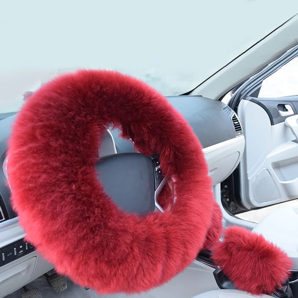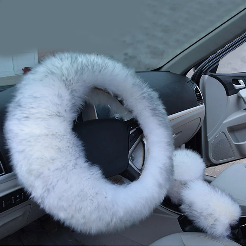 3 шт. длинный плюшевый теплый чехол рулевого колеса автомобиля шерстяной ручной тормоз переключения передач универсальные зимние аксессуары для салона автомобиля
