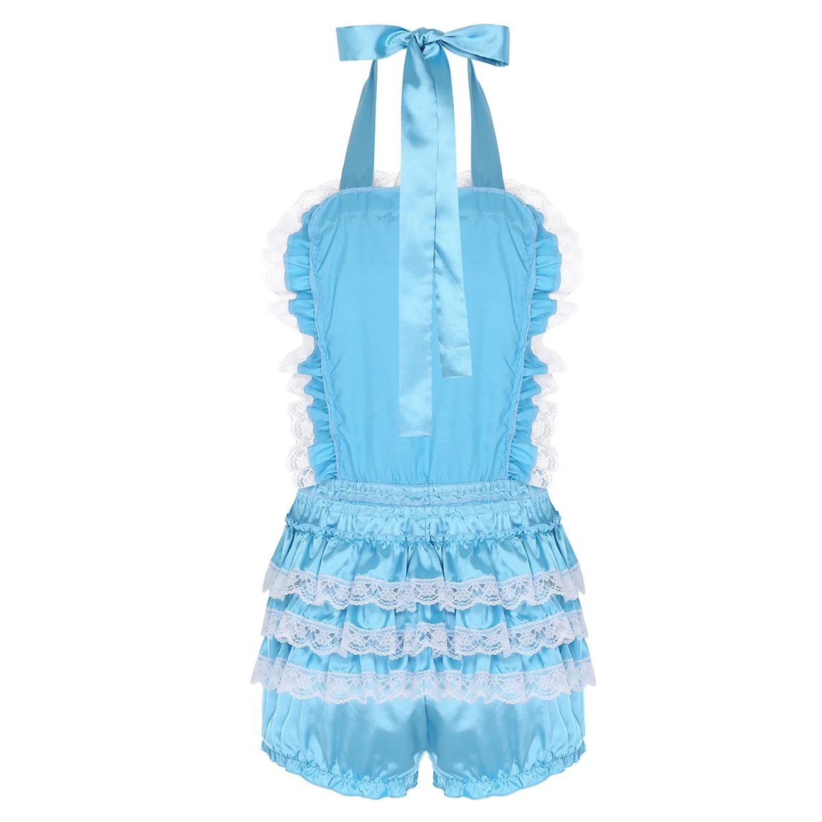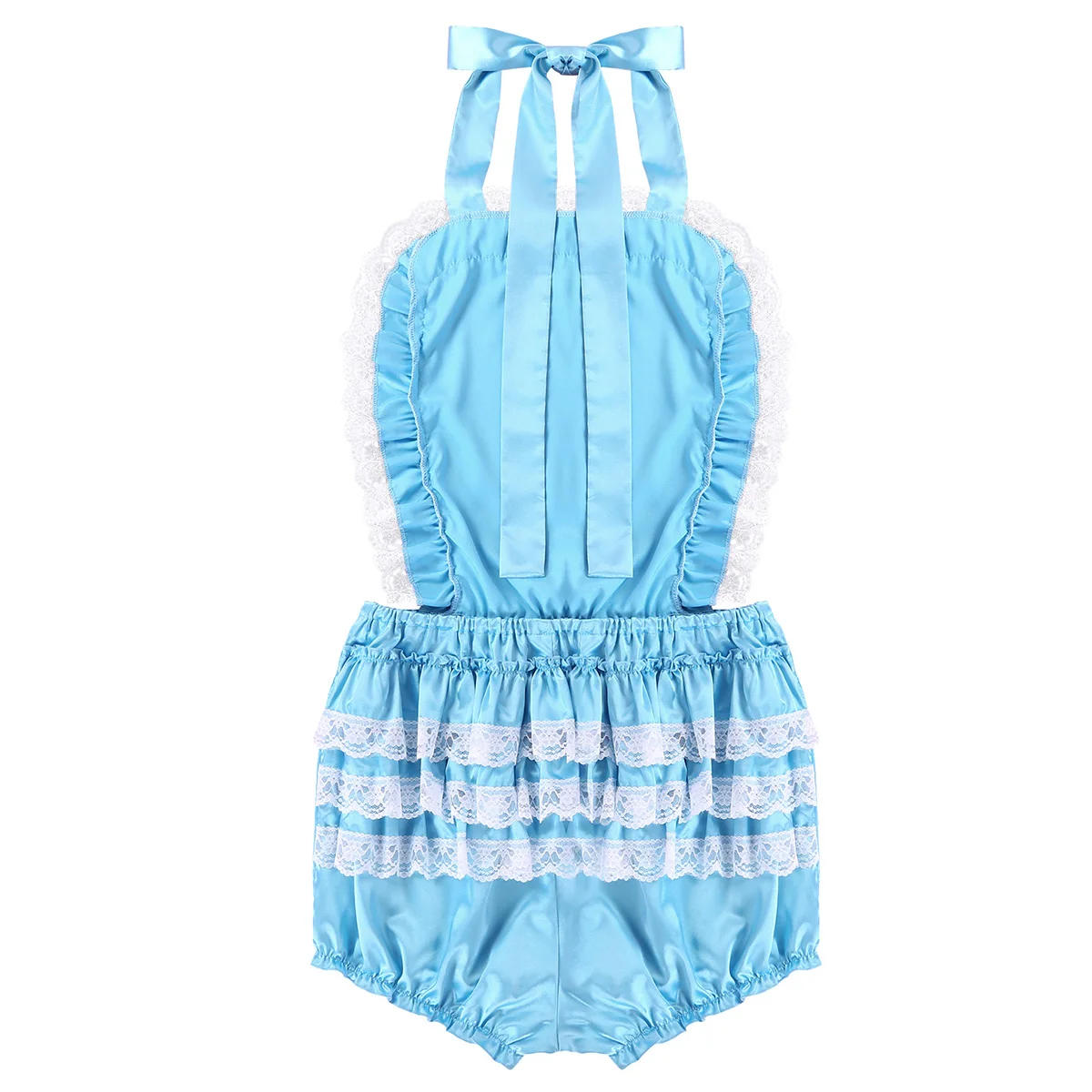 Мужской Атласный кружевной комбинезон с оборками для взрослых, Детский костюм-комод с крестиком, застежка-молния.