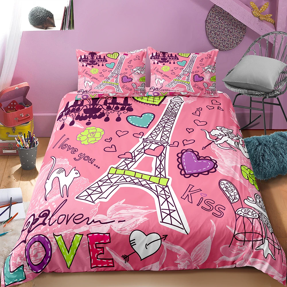 Красочные Рисованные Парижская башня пододеяльник романтический поцелуй любовь постельные принадлежности односпальные двуспальные постельные комплекты покрывало для девочек домашний пододеяльник