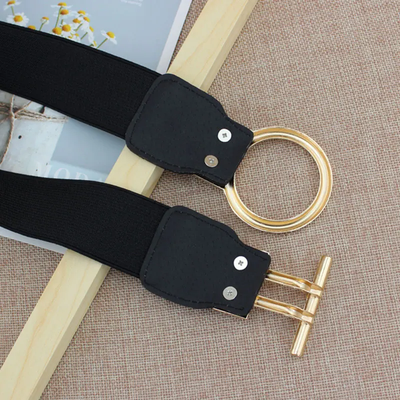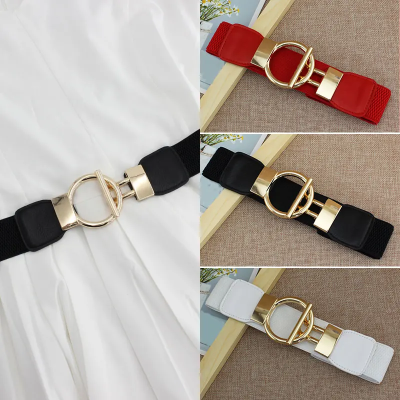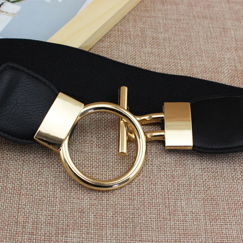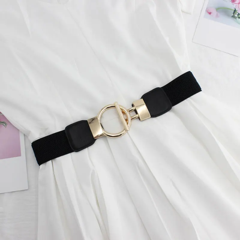 Женское платье с поясом, украшенное простым рукавом, эластичный пояс с золотой пряжкой, широкие ремни