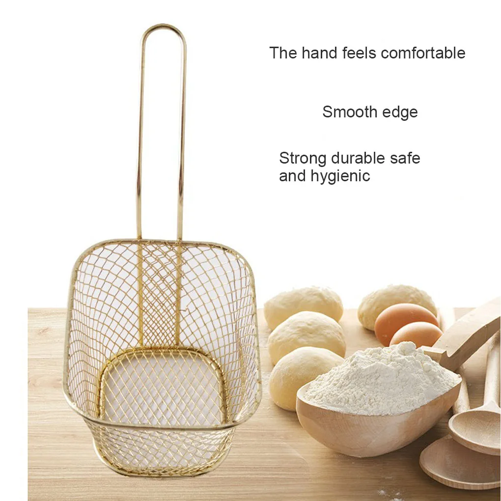 Безопасность и многоразовые: длинная проволочная ручка, чтобы избежать повреждения от жарки пищи, прочный материал для многоразового использования.