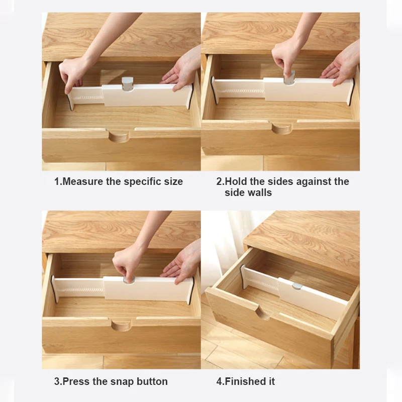 Простой в использовании и очень практичный гаджет для разделения кухонной утвари, столовых приборов, нижнего белья или даже бумажной работы в любом ящике.