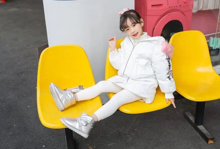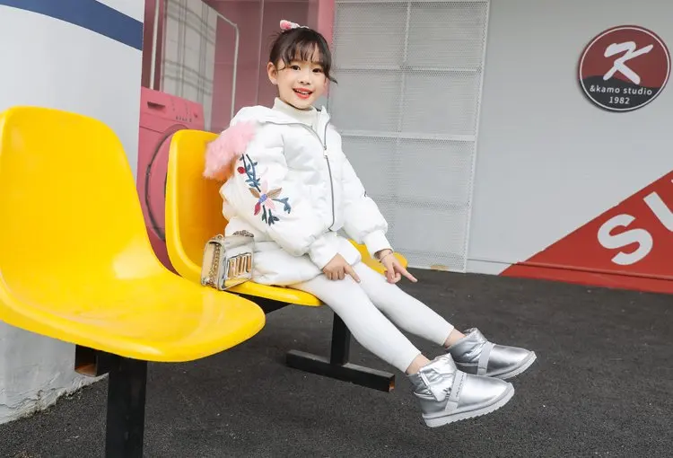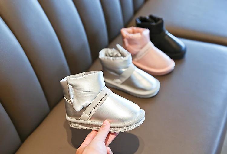 Ботинки для девочек; коллекция 2019 года; модные зимние ботинки для малыша; Детские теплые широкие мягкие резиновые плюшевые кожаные ботинки; детская обувь