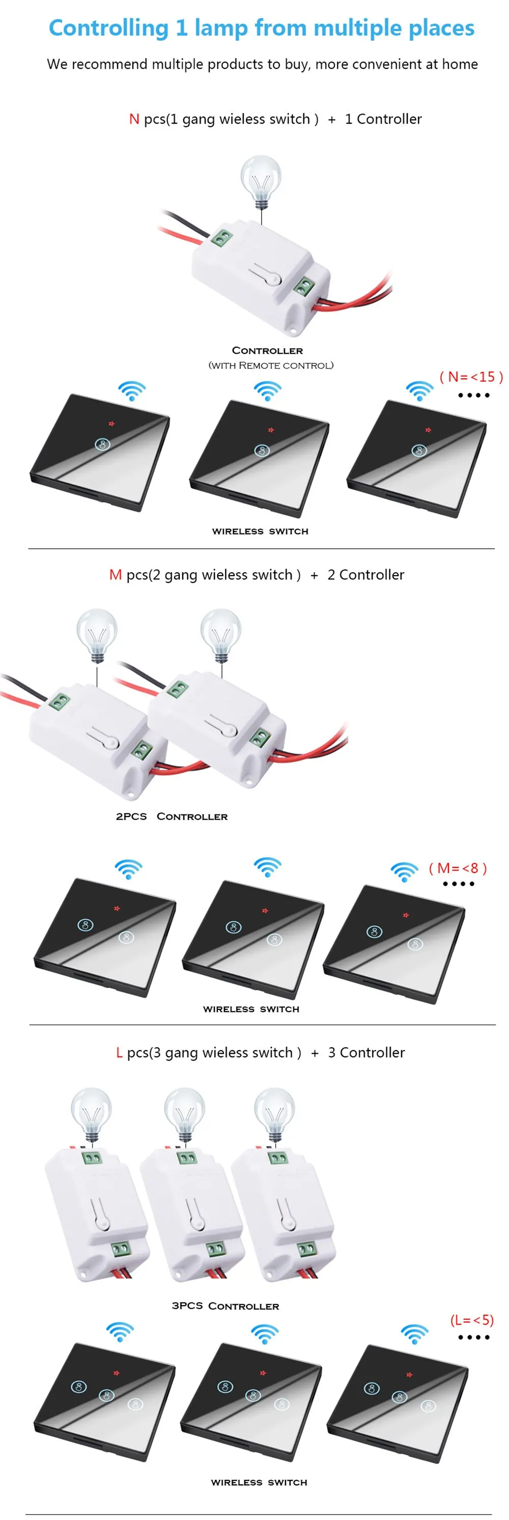 1. Нажмите и удерживайте контроллер в течение 3 секунд, чтобы войти в режим соответствия кода (светильник индикатора кода мигает 5 раз). В это время нажмите 2 раза на беспроводной коммутатор и подождите 2 секунды. Код успешно выполнен (по умолчанию всегда включен);