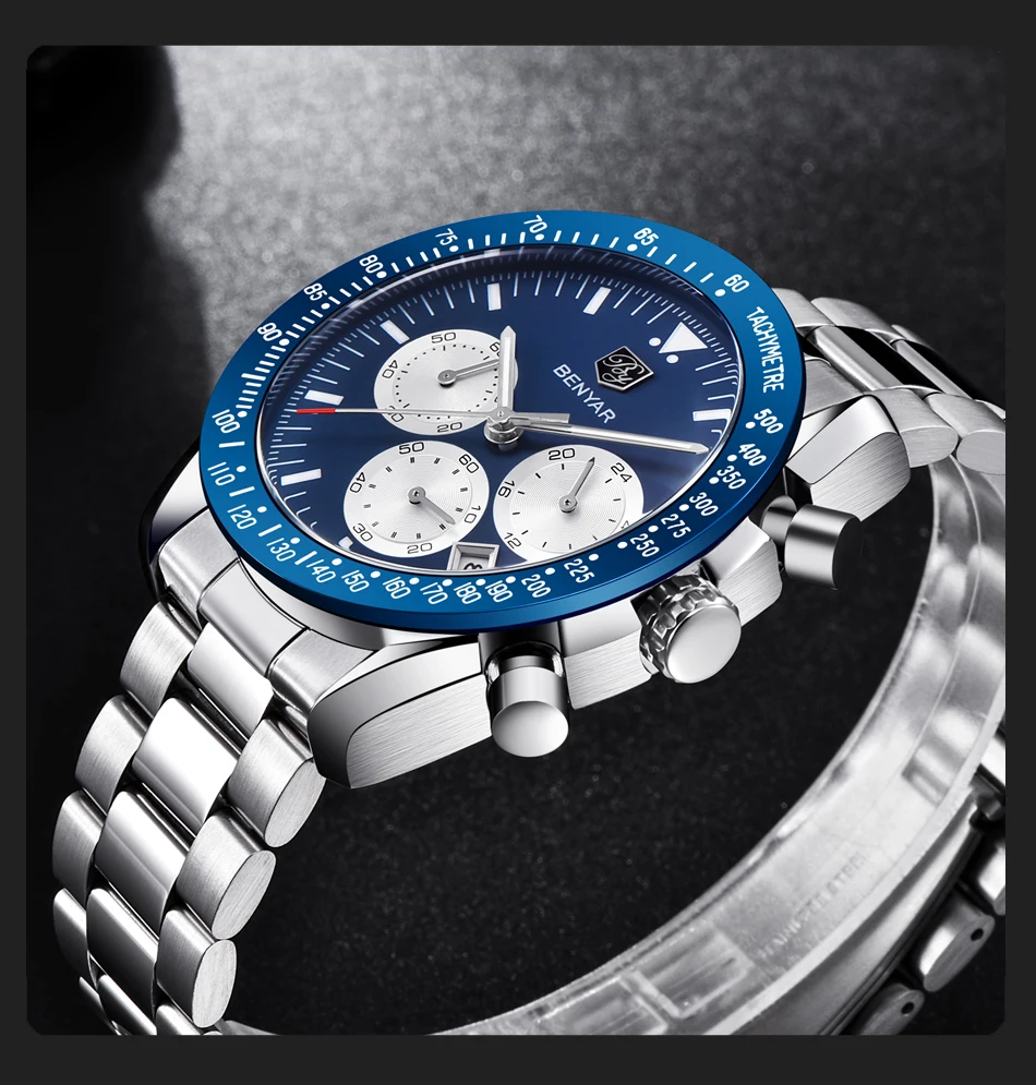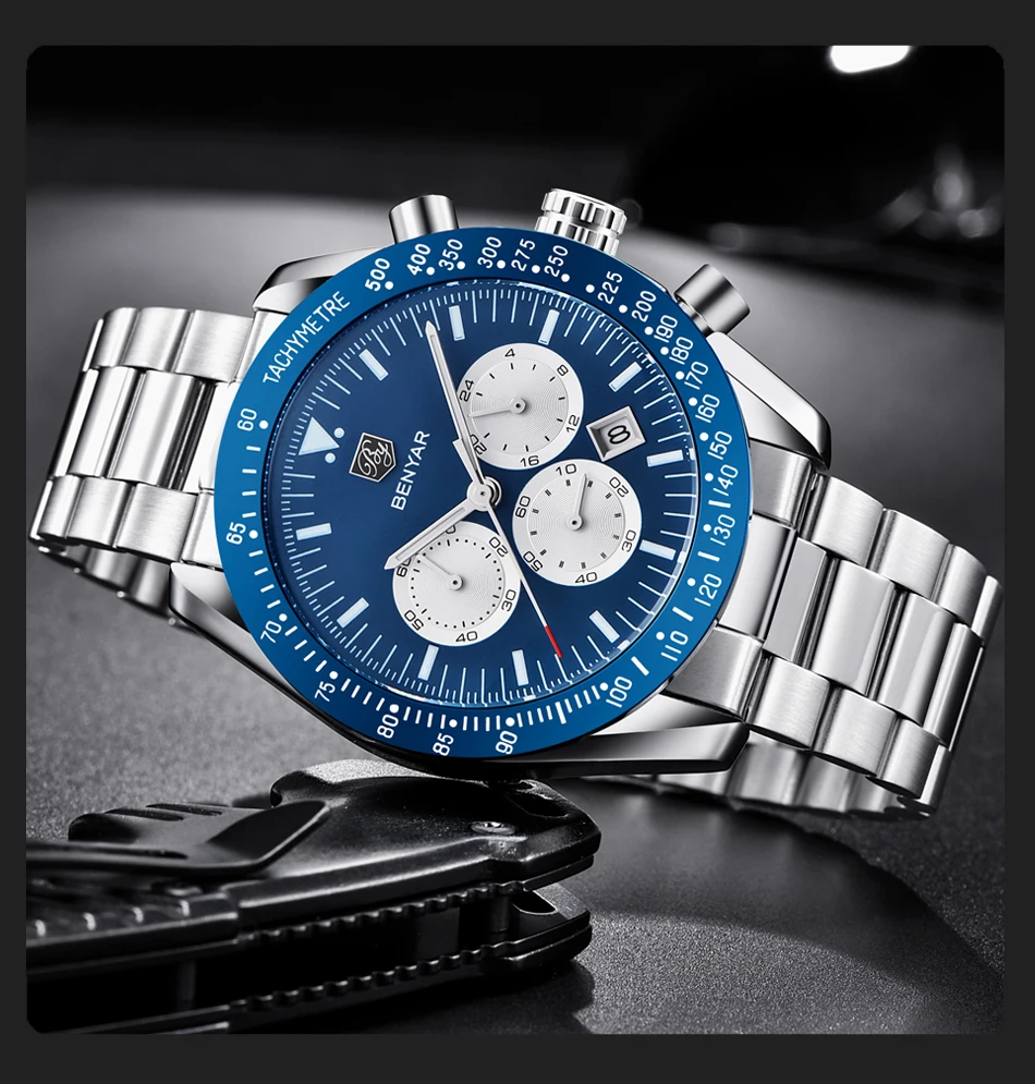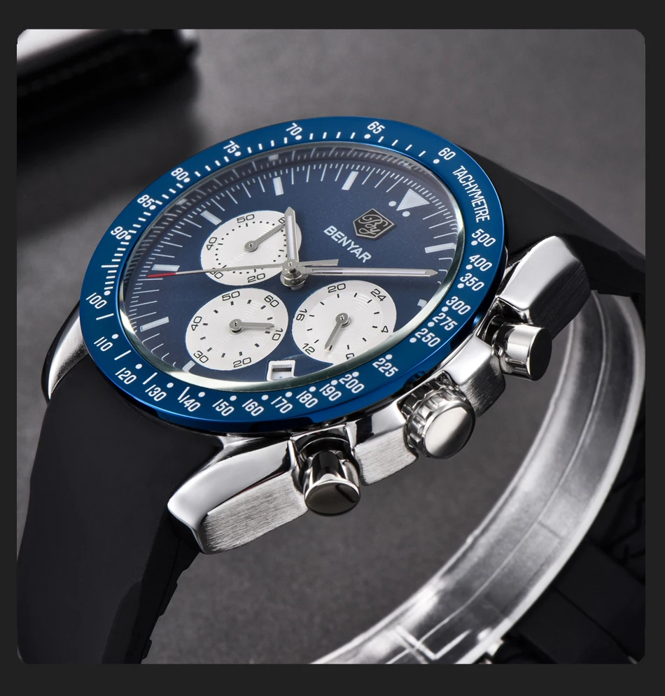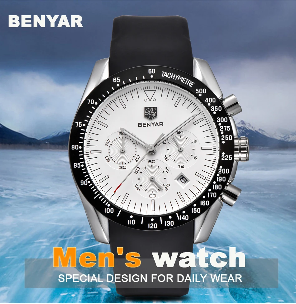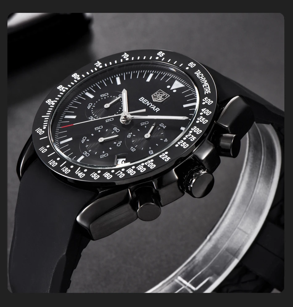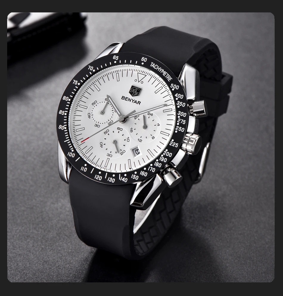 BENYAR мужские часы лучший бренд класса люкс Мужской силиконовый ремешок Водонепроницаемый Спортивный Кварцевый Хронограф военные наручные часы мужские часы relogio