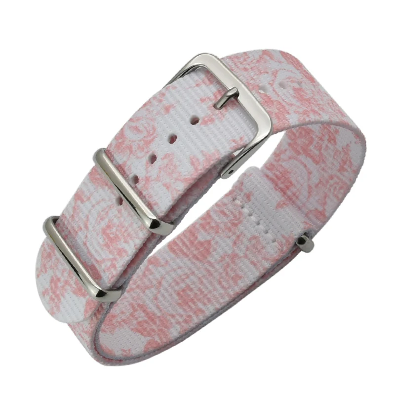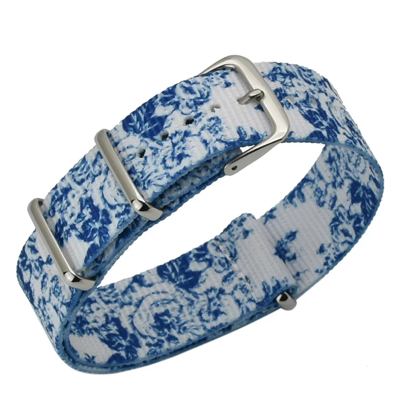 Wdith в наличии: 18 мм/20 мм Длина: 260 мм для 20 мм; 250 мм для 18 мм; Беспроводные размерный ряд: 175 мм ~ 235 мм прибл. 20 мм 165 мм ~ 225 мм прибл. Для 18 мм Цвет браслета: серебристый/золотистый Белый + синий цветок Белый + розовый цветок Материал пряжки: нержавеющая сталь 304L Цвет пряжки: серебристый/розовое золото Хорошее качество ремешком nato Мягкие и удобные 11 регулируемые отверстия Моющийся Скажите «нет» для «выцветания»