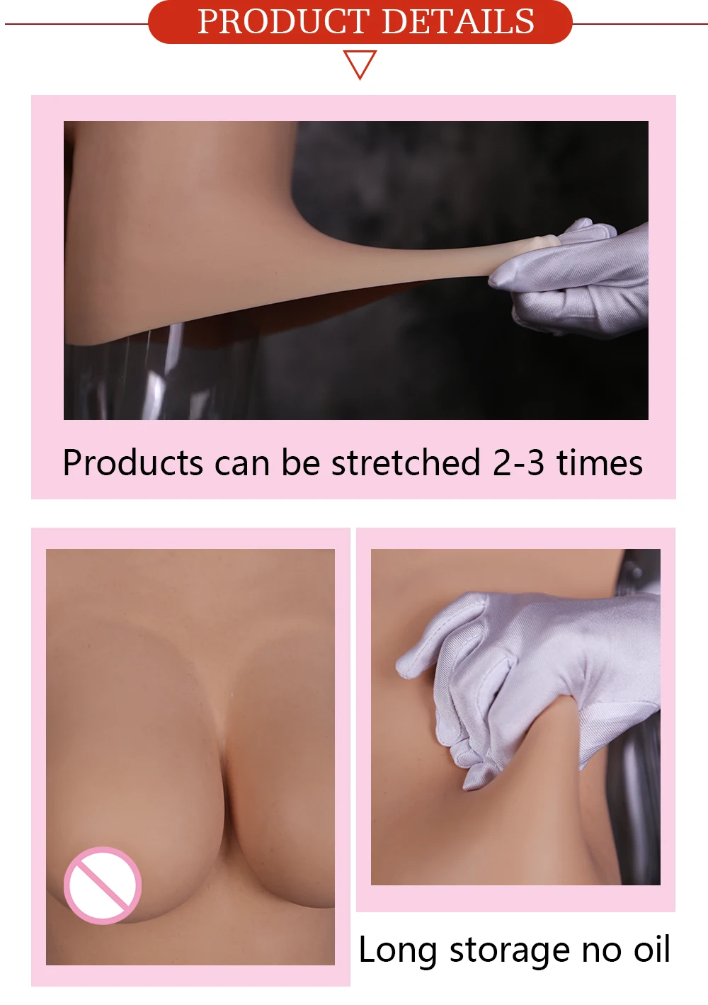 1. Продукт без масла, быстро окрашивается, продукт сухой и легко моется 2. Долговечная красота: цвет сосков и ареолы более vivid, Улучшенная технология макияжа сосок и ареолы, и цвет более реалистичный. 3. Грудь поднимается на 45 градусов, усиливает эффект сбора двух груди, улучшает глубину декольте, не провисает грудь 4. Швы пресс-формы с обеих сторон продукта более секретны, и отверстие для впрыска клея продукта удаляется (более секретное) 5. С платиновым силикагелем, силикагель имеет эластичную память, и прочность продукта значительно улучшается. 6. Очевидно, что высота за ухом улучшается, шея высокая, и изделие доходит до задней части уха, что является более секретным. 7. Текстура кожи более Реалистичная 8. Часть ключицы продукта более очевидна, что делает тело более сексуальным