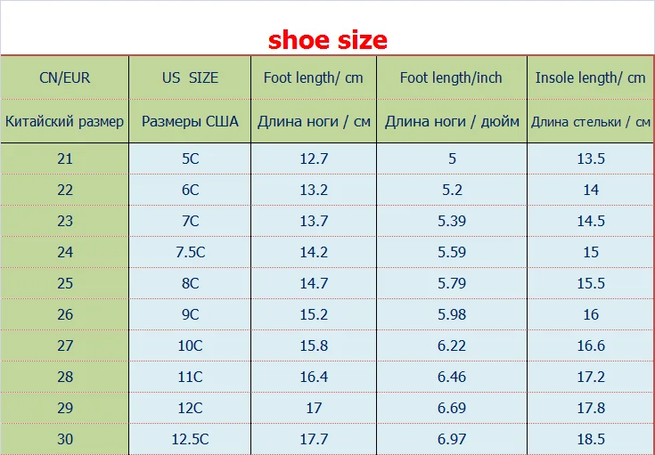 1.Пожалуйста, не оставляйте без внимания цвет, размер и количество; выберите правильный размер для вашего ребенка. Если длина стопы 11,5 см, вы можете увеличить ее на 1 см. Другими словами, выберите длину стельки 12,5 см.