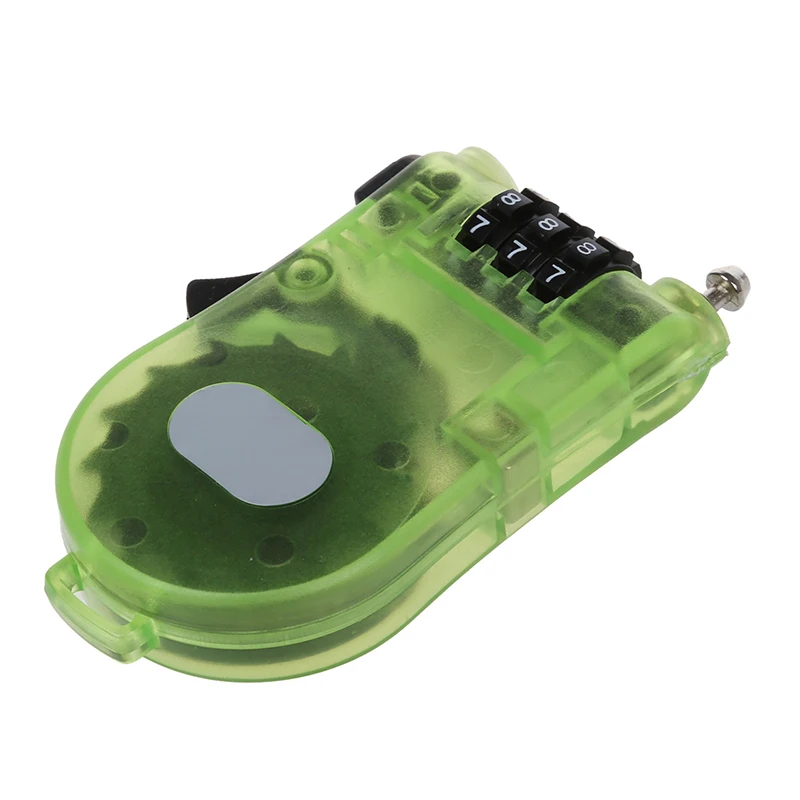 2. чтобы установить свой собственный пароль, сначала оттяните стальной кабель к замку и нажмите на головку кабеля; во-вторых, установите три номера, которые вы хотите; В-третьих, Вытяните головку кабеля, затем был установлен новый пароль.