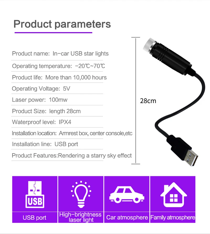 Название продукта: USB Звездные огни в автомобиле