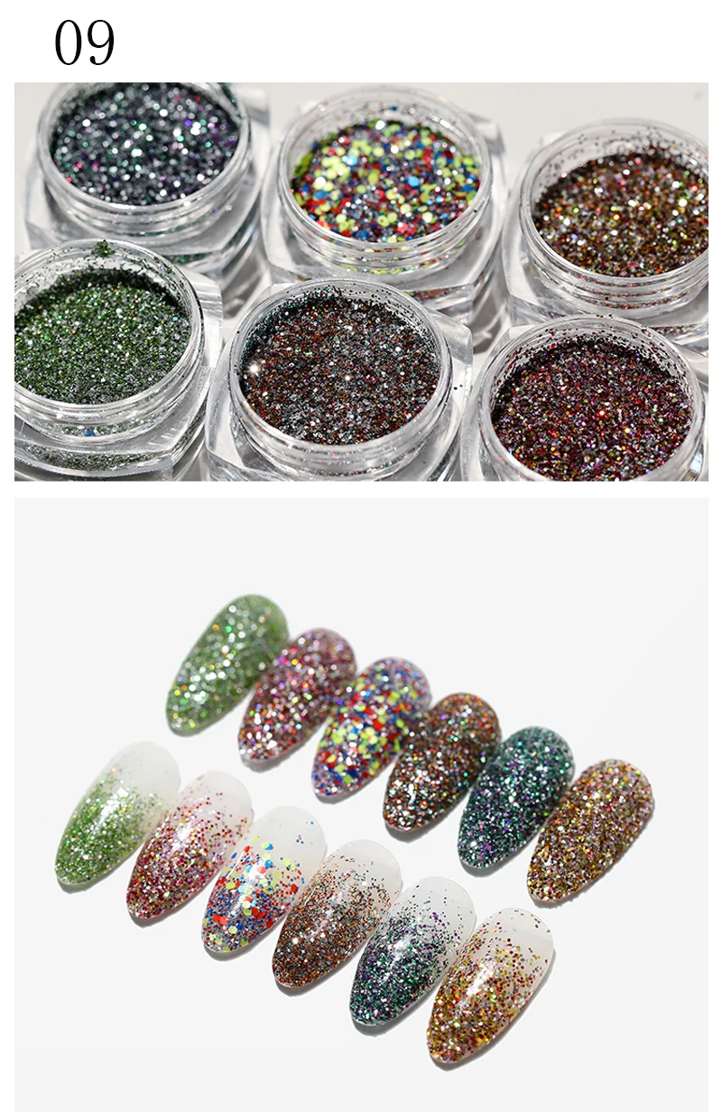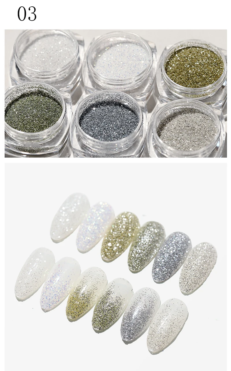 Pecification: Емкость: прибл. Количество 1 г: 6 коробок Цвет: как на изображении комплектация: 6 коробок с блестящим порошком Характеристика: 100% совершенно новое и высококачественное украшение для ногтей, легко наносится на натуральные или искусственные ногти, чистит поверхность ногтей, чистит Базовый лак, И поместите его на герметичное покрытие с прозрачным верхним слоем, вы также можете использовать его для украшения вашего дома, чехол для мобильного телефона, очки, открытки, боди-арта и т. Д.