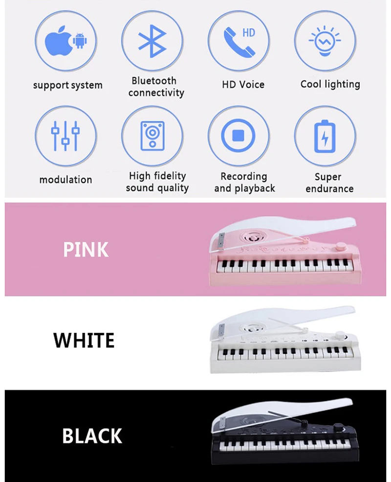 Do re mi fa so la si do. Слушайте внимательно, ваш ребенок может хорошо играть на этом электронном пианино. Самое главное, он может подключаться к Bluetooth для воспроизведения музыки и позволяет вашему ребенку совершать голосовые звонки с вами. Пришло время подарить вашему ребенку эту замечательную жизнь, подарок. Наслаждайтесь весельем, предлагаемым портативным пианино с 31 клавишей.