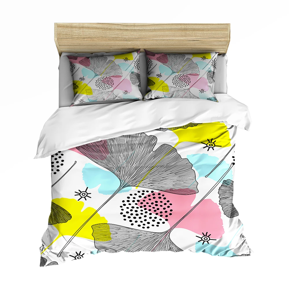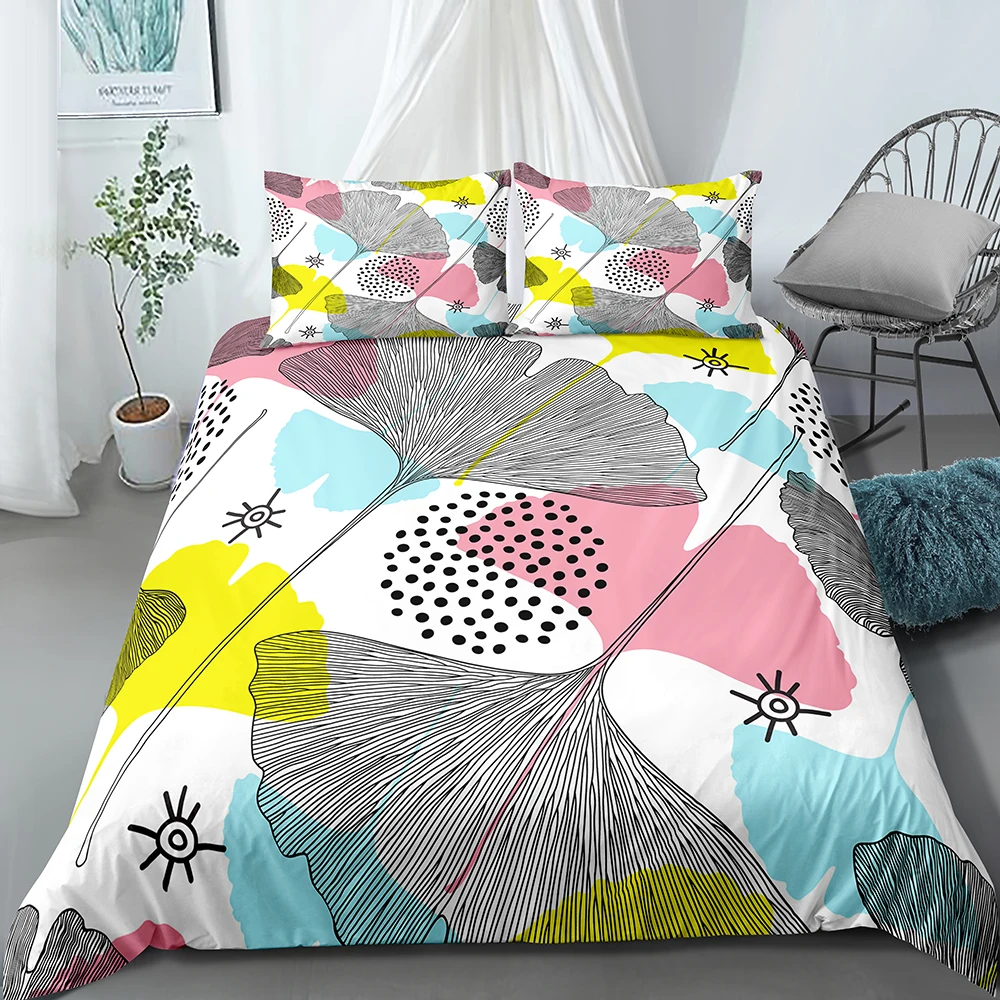 Натуральный дизайн, Комплект постельного белья, абстрактные листья гинкго, пододеяльник, одинарное двойное покрывало, красочное стеганое покрывало, комплекты стеганых одеял для девочек