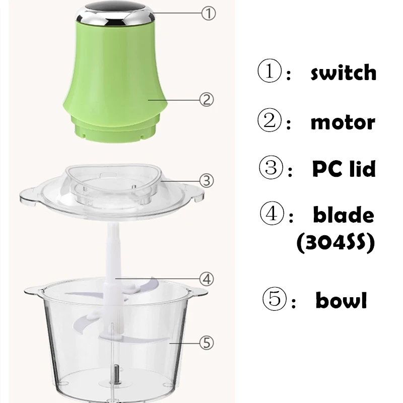 2L 220/110V Мясорубка Кухня Электрический измельчитель Еда измельчитель Нержавеющая сталь Электрический Кухня инструменты Прямая доставка