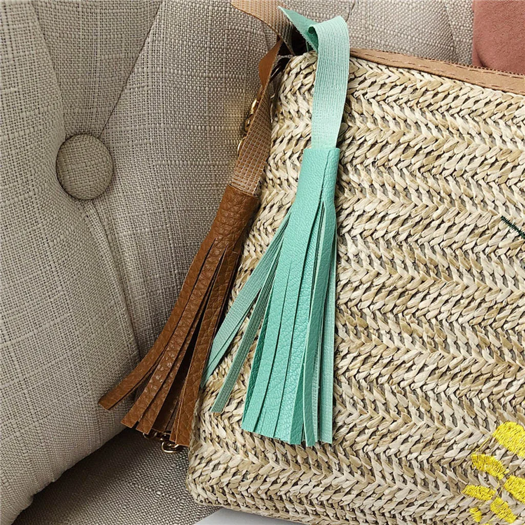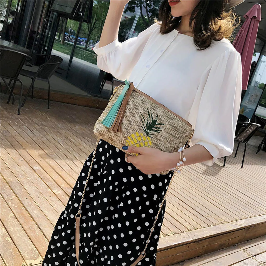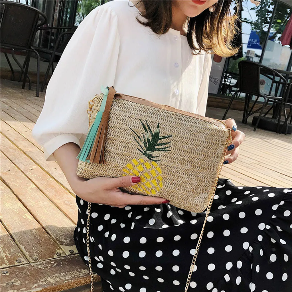 Модная женская сумка-мессенджер с кисточками и листьями ананаса