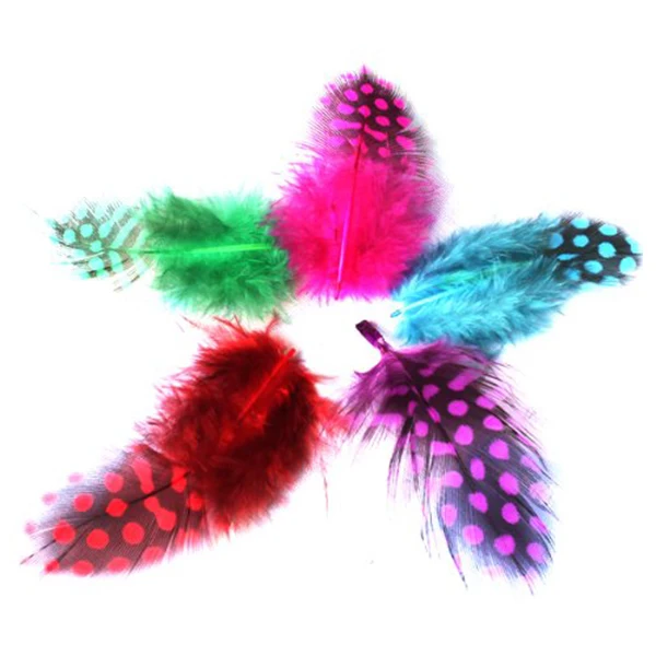 Много мягких и красивых имитационных перьев в ярких цветах