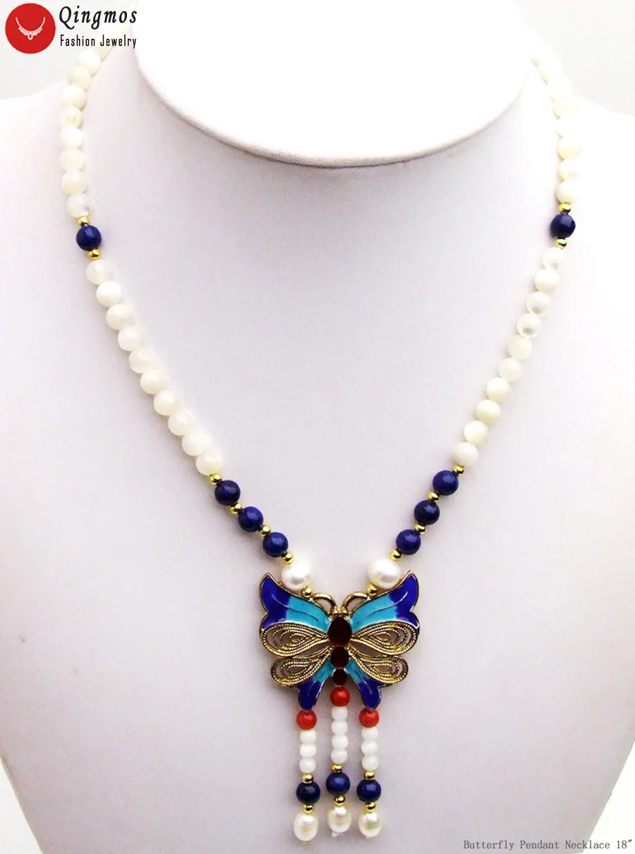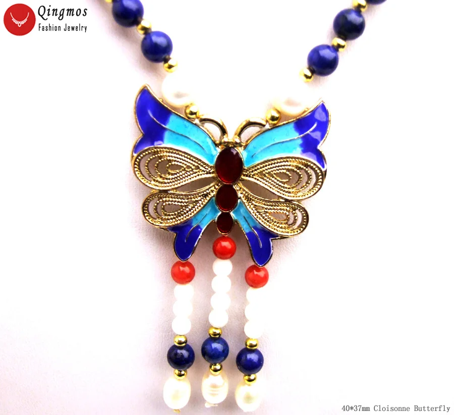 МодаКлуазоне бусина40*37 мм подвеска-бабочка для женщин с 6 мм блестящими натуральными белыми бусинами и 6 мм синими лазуритами ожерелье ювелирные изделия чокеры 18 ''nec6574