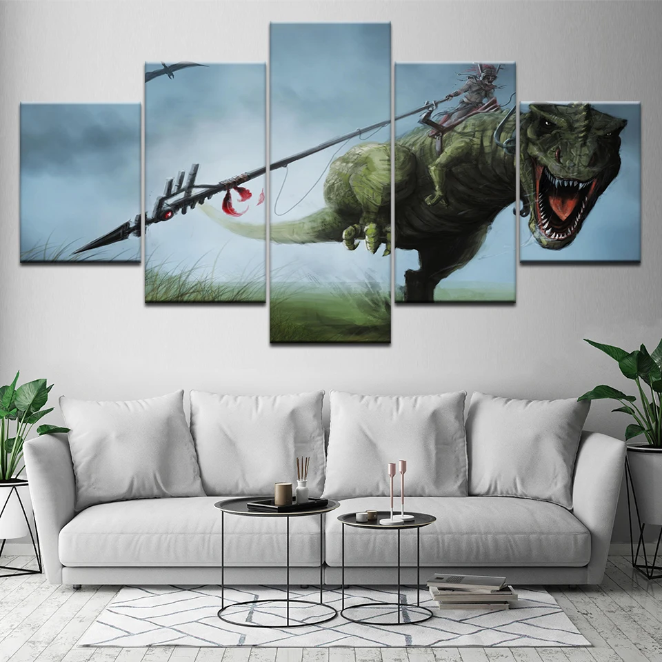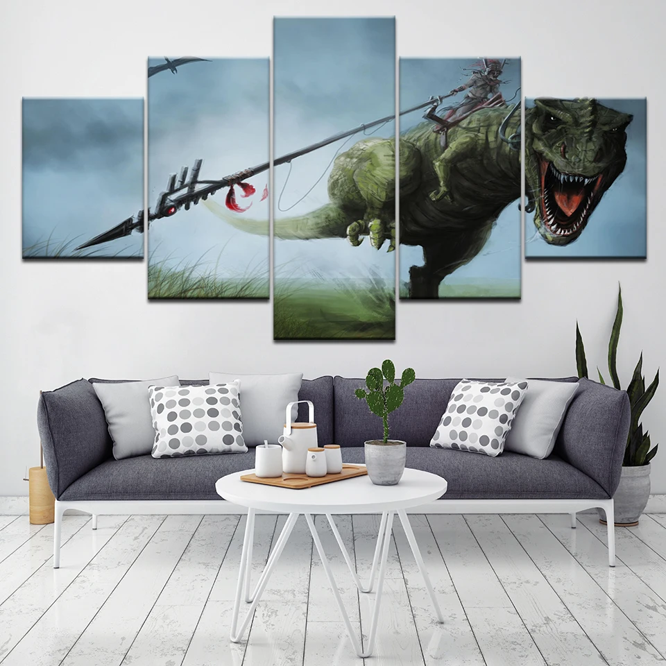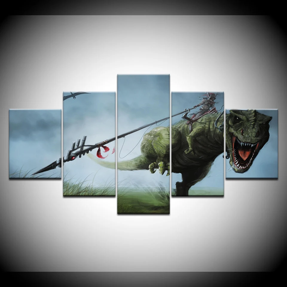 Modname = ckeditorКартина на холсте, домашний декор, настенная художественная структура, 5 шт., Парк Юрского периода, динозавры, картинки для гостиной, HD печать, постер с животными