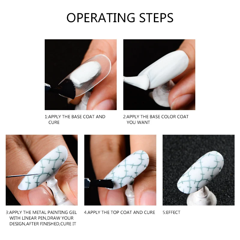 1. Полируйте поверхность ногтя, Нанесите слой основного покрытия и вылечите его.