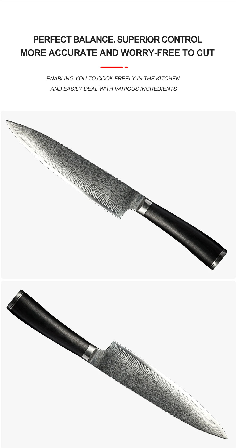 * Дамасский узор для улучшения устойчивости к пятнам и предотвращения прилипания пищи к телу ножа.