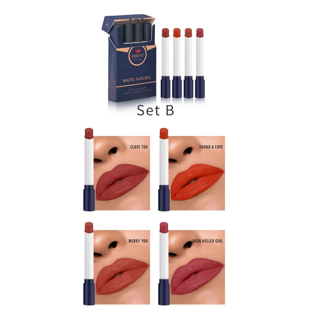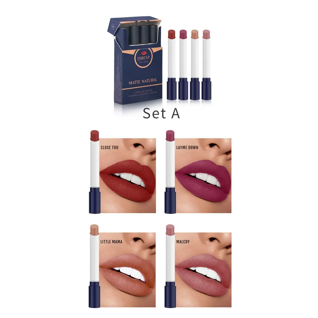 4 шт/1 коробка матовая трубка для табака губная помада набор 4 цвета губная помада долговечная водонепроницаемая