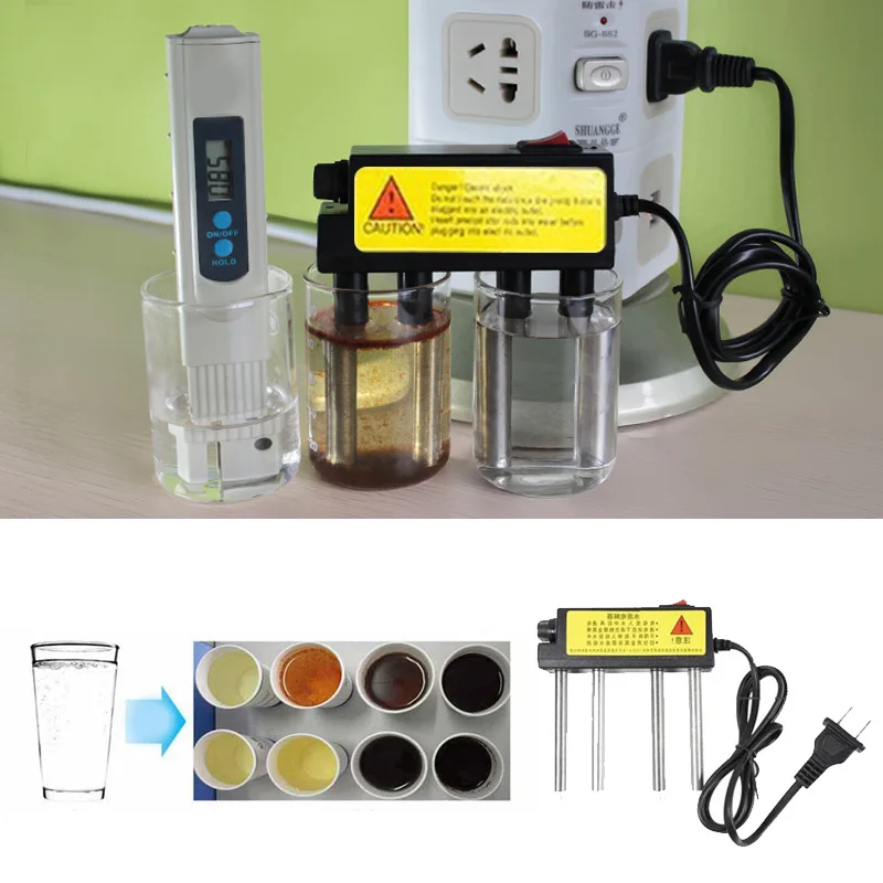 Поместите два электрода в два отдельных контейнера для воды, затем подключите питание, нажмите переключатель, электролиз 30-60 секунд
