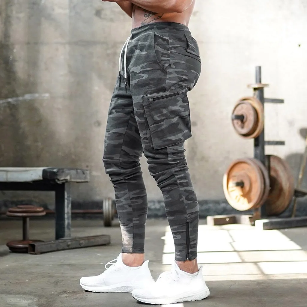 Men Sports Jogging Multi-pocket Camouflage Bodybuilding Long Pants Trousers