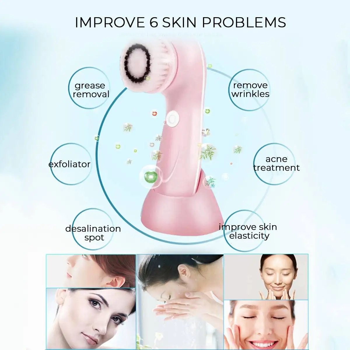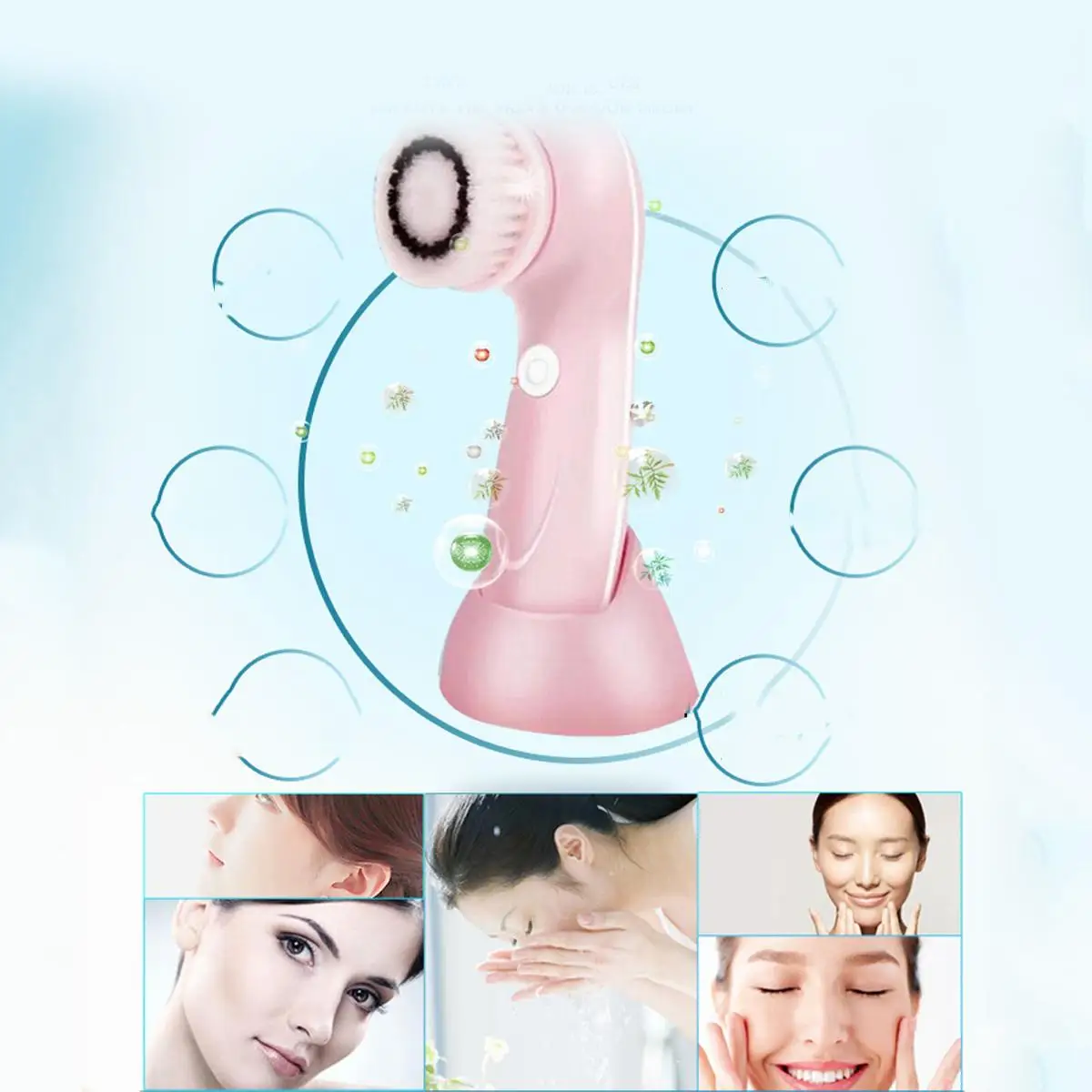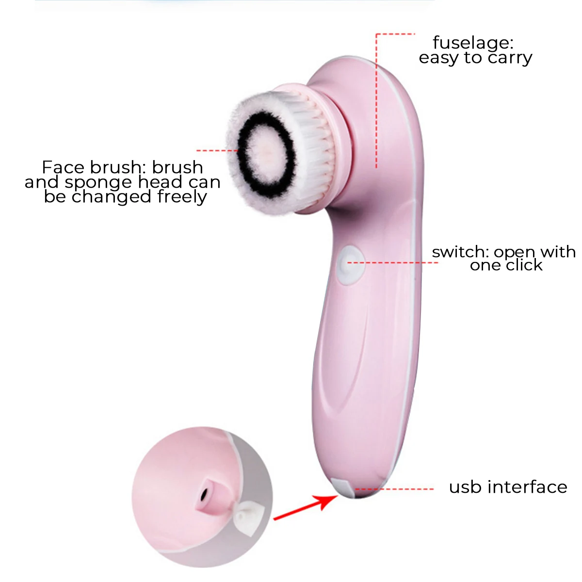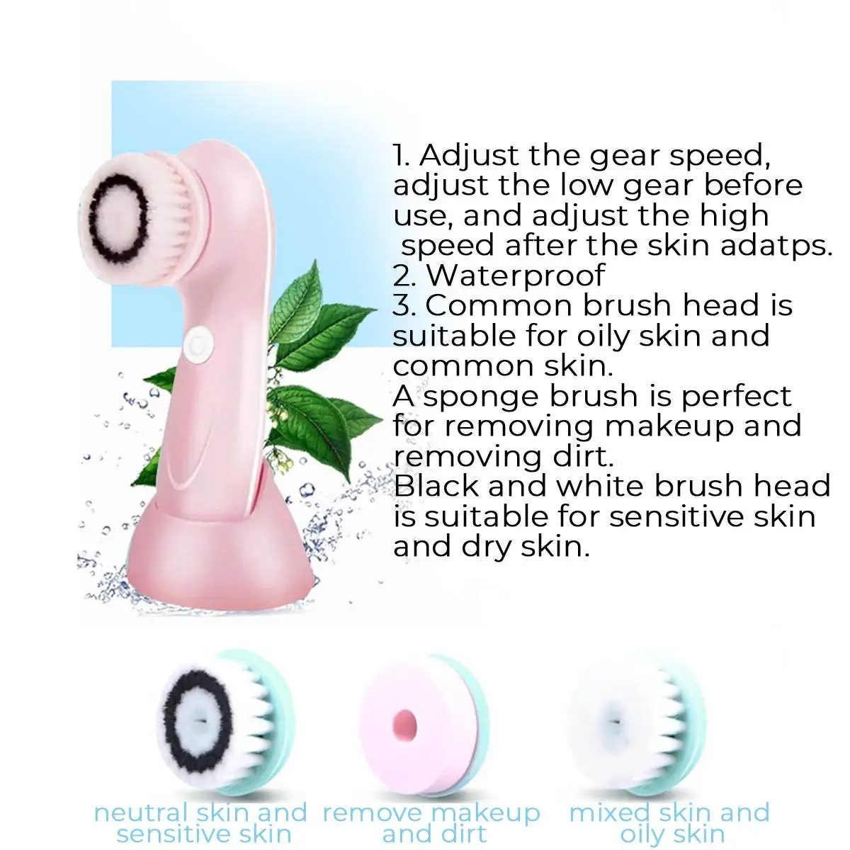 Особенности 1. Поставляется с 3 головками Нормальная щетка для волос для глубокого очищения и снятия макияжа. Тонкая щетка для волос для комбинированного и чувствительного очищения кожи Спонж для очищения жирной кожи 2. Вращение на 360 градусов, в 6 раз чище, чем ручная стирка, и очень эффективно очищает лицо. 3. Зарядка от USB, энергосбережение. 4. Водонепроницаемость, но, пожалуйста, не мойте устройство под водой напрямую. Снимите головки для мытья. 5. С изящной подарочной коробкой, очень хорошо подарить другу в подарок. Включает в себя 1x устройство 3x волос насадка для зубных щеток 1x USB кабель