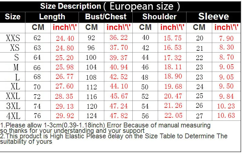 Таблица европейских размеров для взрослых имеет погрешность от 1 до 3 см. Пожалуйста, разместите свой заказ в соответствии с размером таблицы. Если у вас есть какие-либо потребности, пожалуйста, свяжитесь с владельцем магазина
