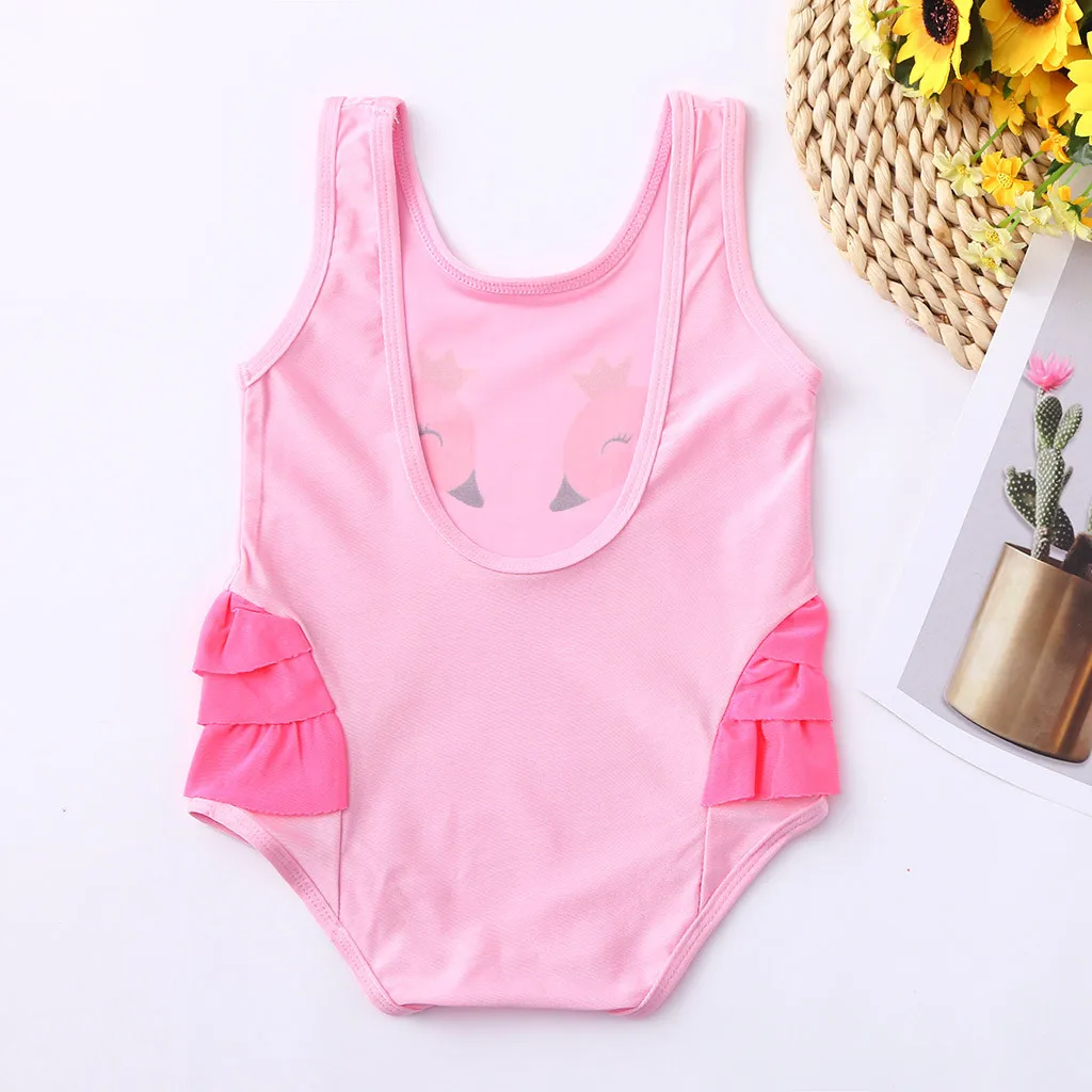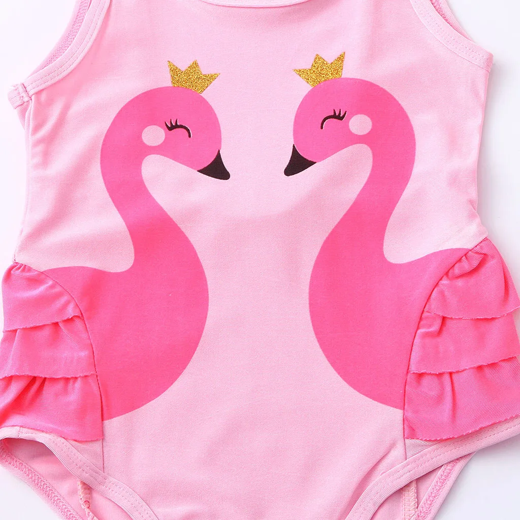 Летний купальный костюм с рюшами и принтом лебедя для маленьких девочек, комбинезон с открытой спиной, комбинезон