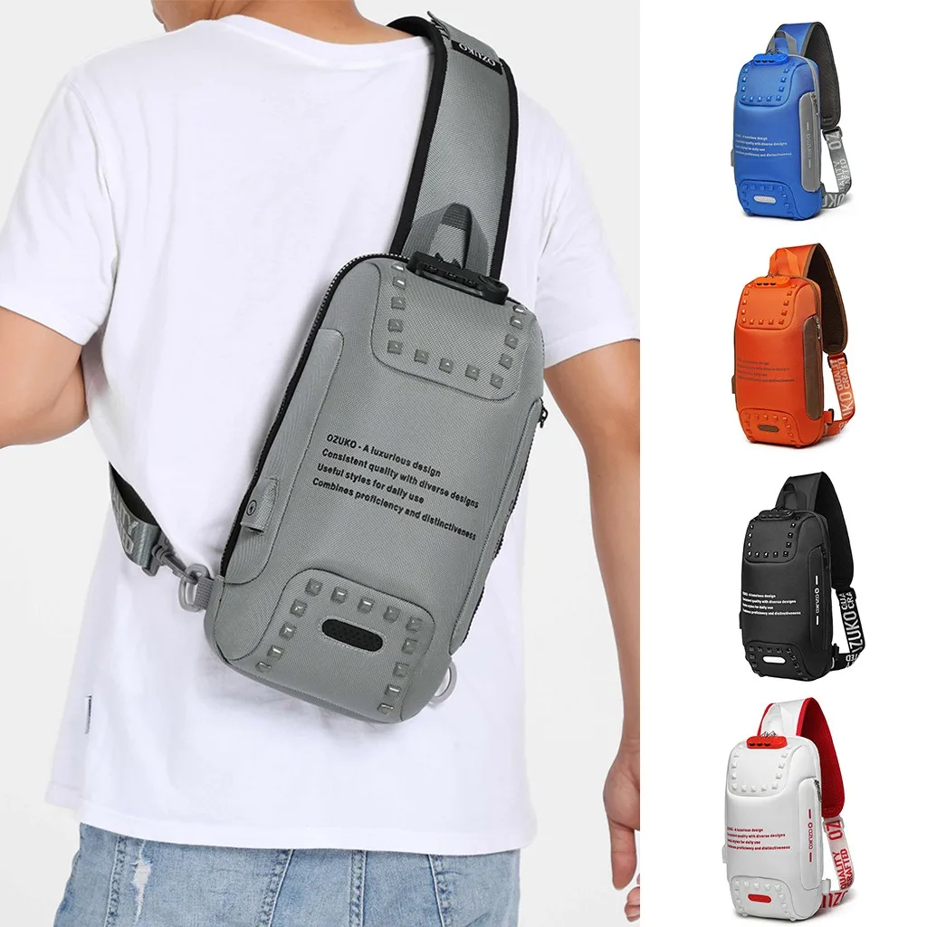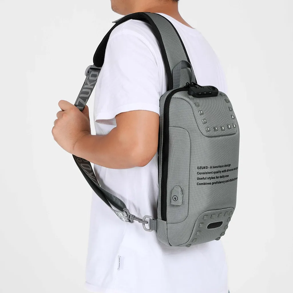 OZUKO, Мужская многофункциональная сумка через плечо, противоугонная, водонепроницаемая, для путешествий, на груди, непроницаемая, h1
